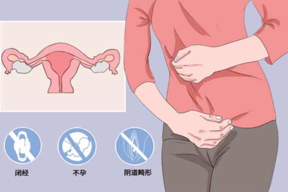 多數(shù)患者合并無陰道或陰道發(fā)育不良。婦科檢查未見陰道口或陰道發(fā)育不良。
