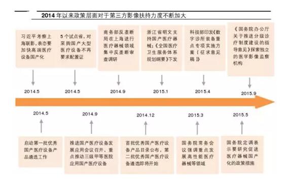 國(guó)內(nèi)的醫(yī)學(xué)影像中心復(fù)制了這種模式,但初期受限于人才引進(jìn)難、資金籌集少、隱形歧視和政策限制等原因,彼時(shí)獨(dú)立醫(yī)學(xué)影像中心在國(guó)內(nèi)發(fā)展緩慢。2016年8月,衛(wèi)計(jì)委發(fā)布《醫(yī)學(xué)影像診斷中心基本標(biāo)準(zhǔn)和管理規(guī)范(試行)》,首次明確了第三方醫(yī)學(xué)影像診斷中心獨(dú)立法人地位,其后隨著“十三五”醫(yī)改規(guī)劃中“加快社會(huì)辦醫(yī)”的內(nèi)容推出和醫(yī)療改革的不斷推進(jìn),行業(yè)終于迎來(lái)轉(zhuǎn)機(jī)。