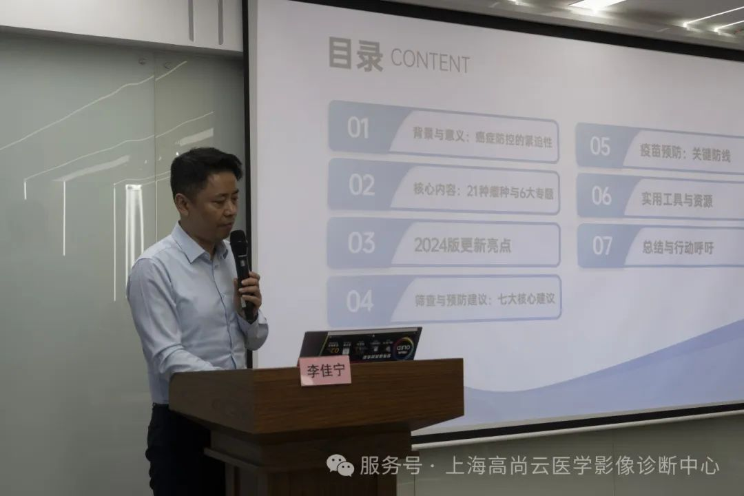 探索研討會議上,上海高尚云醫(yī)學影像診斷中心院長李佳寧以《常見惡性腫瘤篩查和預防推薦(2024版)》為核心內容,結合全球腫瘤疾病譜的新近數(shù)據(jù)及臨床實踐經驗,進行了系統(tǒng)性解讀與深度剖析。李佳寧院長首先援引世界衛(wèi)生組織國際癌癥研究機構(IARC)發(fā)布的《2023年全球癌癥報告》指出,當前腫瘤已成為繼心腦血管疾病之后的第二大死亡原因,全球每年新發(fā)癌癥病例超2000萬例,死亡病例近1000萬例。在我國,隨著工業(yè)化進程加快、生活方式改變及人口老齡化加劇,肺癌、結直腸癌、胃癌、乳腺癌、肝癌等惡性腫瘤的發(fā)病率呈現(xiàn)逐年上升且年輕化的趨勢,疾病負擔已占全球腫瘤總負擔的20%以上。他進一步強調,這類疾病不僅對患者個體造成生理痛苦與心理創(chuàng)傷,更因其長期診療需求,給家庭經濟及社會醫(yī)療資源帶來沉重壓力——數(shù)據(jù)顯示,我國腫瘤患者年均治療費用達15萬-30萬元,因病致貧、返貧現(xiàn)象在部分地區(qū)仍較為突出。預防腫瘤的重要性主要體現(xiàn)在以下方面:降低個體發(fā)病與死亡風險,減輕家庭經濟與照護負擔,緩解社會醫(yī)療資源壓力,推動公共健康與社會責任。
