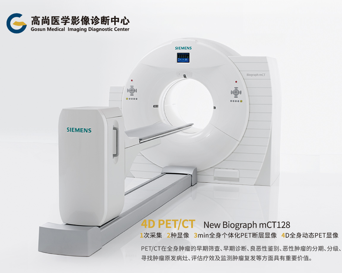 廈門高尚醫(yī)學影像診斷中心引進西門子新型128排52環(huán)4D PET/CT,Biograph mCT型號PET/CT是目前全球領先的PET/CT之一。采用全球核醫(yī)學界公認最具發(fā)展?jié)摿Φ母吣苜ゑR射線探測晶體LSO作為PET探測器材料。其采用先進的晶體切割工藝及優(yōu)秀的符合事件探測電子線路設計,具有靈敏度高、準確度高、檢查速度快、輻射劑量低的特點,并且該設備具有業(yè)界公認的最精確的PET定量分析系統(tǒng),可快速、準確地評價腫瘤的治療療效。